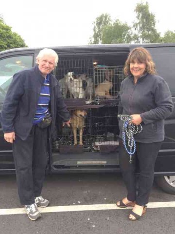 Carole and Richard, with Hetty, Patch, Sandy, Bubbles, Squeak and Tinker, on their move from Coín in S.Spain to Blackpool, UK.