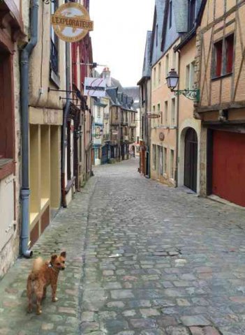 Juli taking an early morning stroll through the old streets of Le Mans in France.